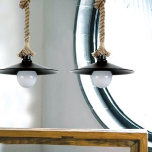 InLight Κρεμαστό φωτιστικό από καφέ σχοινί και μαύρο μέταλλο 1XE27 D:36cm (4382-BL)