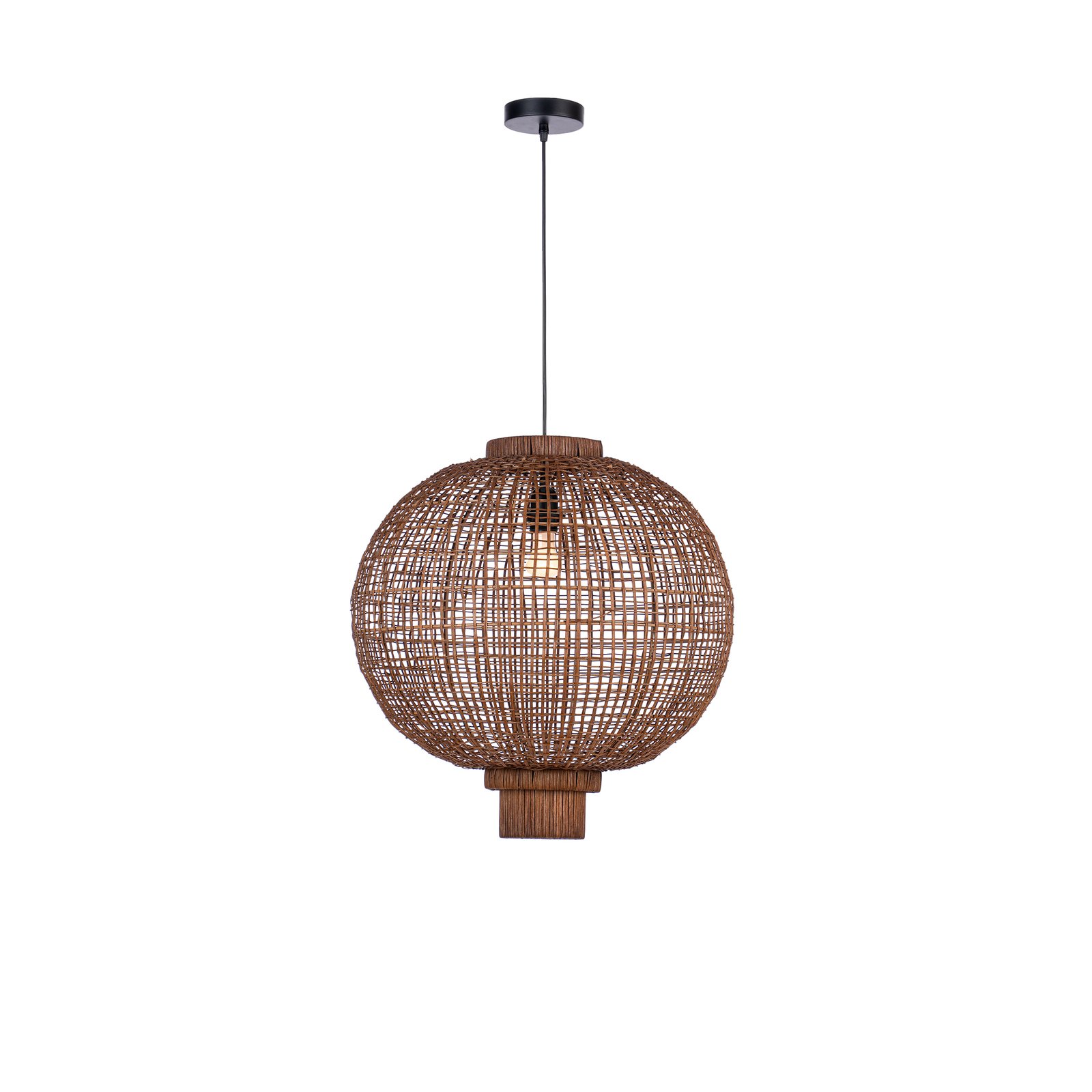 Κρεμαστό μονόφωτο φωτιστικό κατασκευασμένο από rattan σε καφέ χρώμα.
