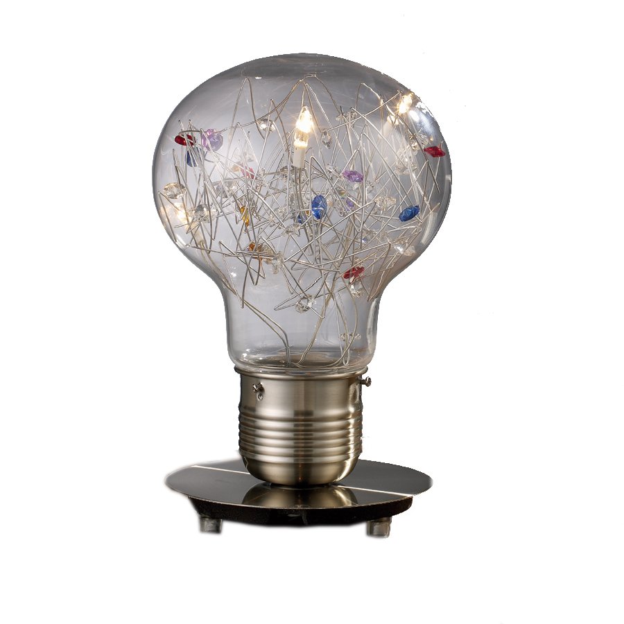 Επιτραπέζιο φωτιστικο (τρίφωτο πορτατίφ), κατασκευασμένο με βάση από χρώμιο και γυαλί σε σχήμα γλόμπου. Είναι διακοσμημένο με πολύχρωμα κρύσταλλα υψηλής ποιότητας.Ύψος: 32εκ.Διάμετρος: 20εκ.Λαμπτήρες: 3 τεμ.Τύποι Λαμπτήρων: G4Watt: 20