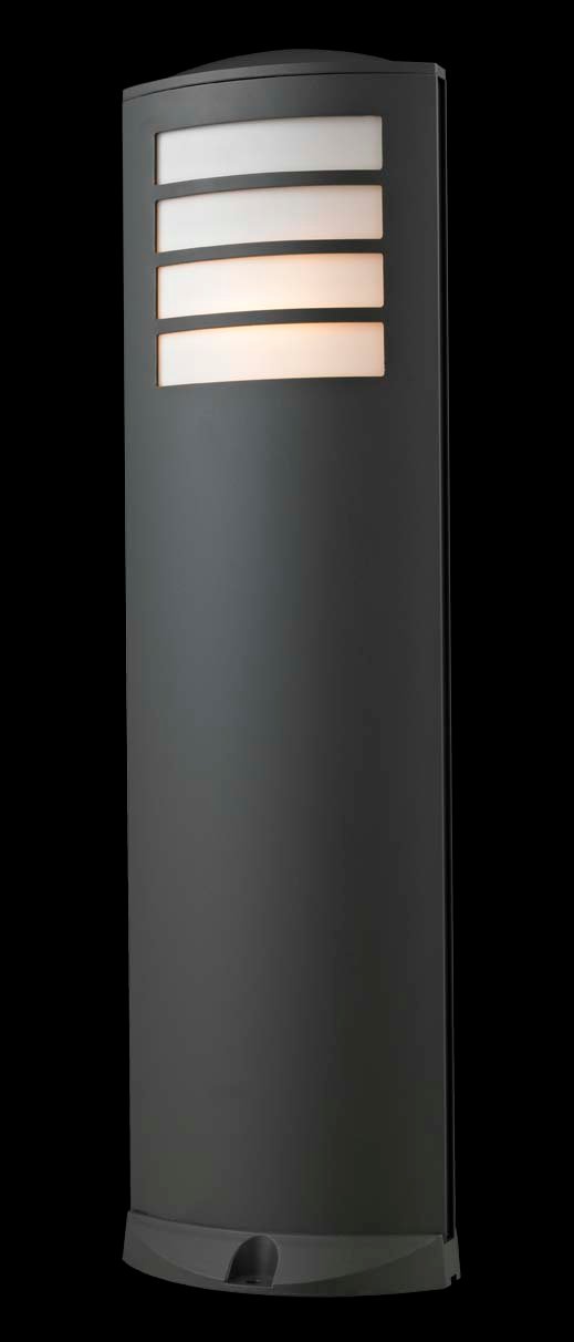 Εξωτερικό φωτιστικό δαπέδου(κολωνάκι), στο χρώμα του γραφίτη (σκούρο γκρί).Το σώμα του φωτιστικού είναι κατασκευασμένο από χυτό αλουμίνιουψηλής πίεσης και κράμα αλουμινίου.Η επιφάνειά του είναι επικαλυμμένη με διπλή αντιδιαβρωτική στρώσηώστε να παρατείνει την αντοχή του.Ο λαμπτήρας προστατεύεται από PVC υψηλής ποιότητας.Ύψος: 60,5 εκ.Μήκος: 17 εκ.Πλάτος: 11,5 εκ.Λαμπτήρες: 1 τεμ.Τύπος Λαμπτήρα: Ε27Watt: 60Στεγανότητα: IP44
