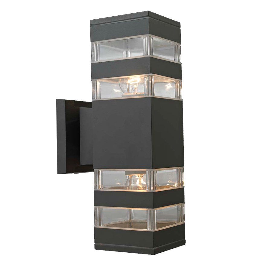Επιτοίχιο φωτιστικό εξωτερικού χώρου( απλίκα), στο χρώμα του γραφίτη (σκούρο γκρί) με φωτισμό πάνω-κάτω .Το σώμα του φωτιστικού είναι κατασκευασμένο από χυτό αλουμίνιουψηλής πίεσης και κράμα αλουμινίου.Η επιφάνειά του είναι επικαλυμμένη με διπλή αντιδιαβρωτική στρώσηώστε να παρατείνει την αντοχή του.Ο λαμπτήρας προστατεύεται από PVC υψηλής ποιότητας.Ύψος: 30 εκ.Μήκος: 9 εκ.Πλάτος: 15,5 εκ.Λαμπτήρες: 2 τεμ.Τύπος Λαμπτήρα: Ε27Watt: 60Στεγανότητα: IP44
