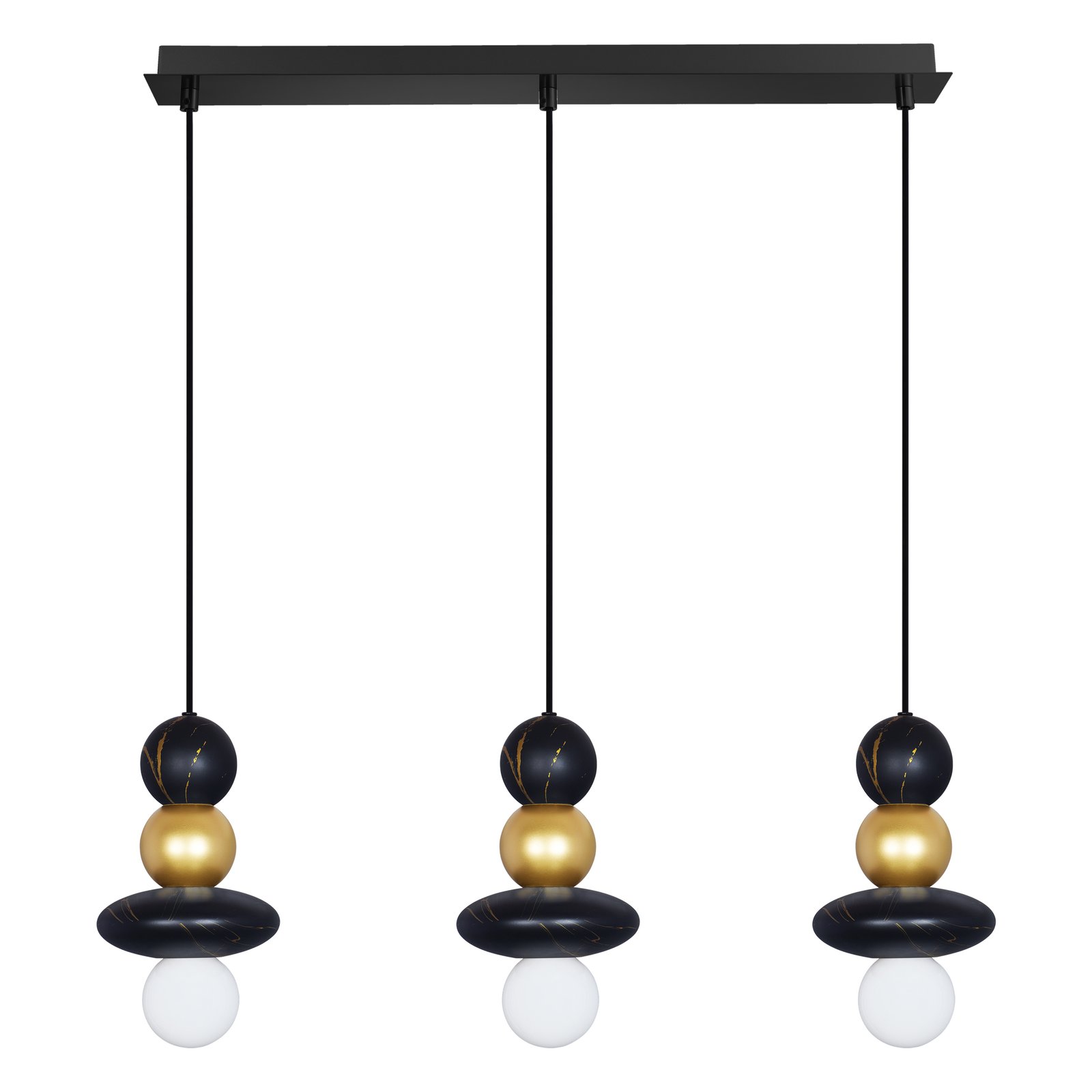 Κρεμαστό φωτιστικό τρίφωτο κατασκευασμένο από μέταλλο με εφέ μάρμαρου σε μαύρο και χρυσό χρώμα.