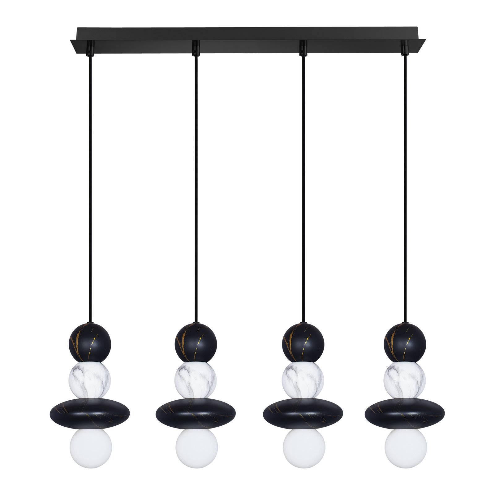 Κρεμαστό φωτιστικό τετράφωτο κατασκευασμένο από μέταλλο με εφέ μάρμαρου σε μαύρο και λευκό χρώμα.
