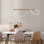 Πρόκειται για ένα κρεμαστό φωτιστικό με αφαιρετική σχεδίαση. Το χρυσαφί μέταλλο συμπληρώνει τον led φωτιζόμενο και εύκαμπτο σωλήνα θερμής απόχρωσης. Το φως διαχέεται σε όλον τον χώρο και η ανάρτησή του είναι ρυθμιζόμενη. Διακοσμεί ιδανικά οποιονδήποτε μοντέρνο εσωτερικό χώρο.