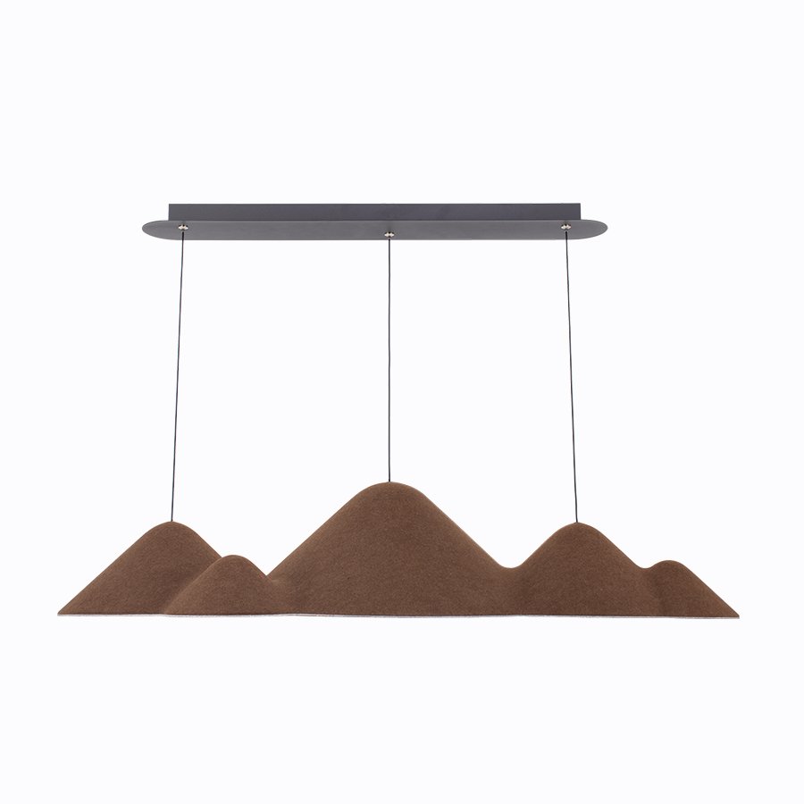 Κρεμαστό φωτιστικό από ηχοαπορροφητικό υλικό (PET Felt) που μειώνει τον θόρυβο στο χώρο σε καφέ χρώμα.Ύψος: 175 εκ.Μήκος: 110 εκ.Πλάτος: 54 εκ.Τύπος Λαμπτήρα: Samsung Led ChipWatt: 21WLumen: 1250lmΘερμοκρασία Χρώματος: 3000Κ, CRI>90Dimmable: Όχι