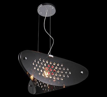 Κρεμαστό φωτιστικό (μονόφωτο) κατασκευασμένο με βάση χρωμίου και plexiglass χρώματος μαύρου. Φέρει διακοσμητικά στοιχεία από κρύσταλλα asfour διάφανα και κόκκινου χρώματος.Ύψος: 130 εκ.Διάμετρος: 62 εκ.Λαμπτήρες: 1 τεμ.Τύπος Λαμπτήρα: Ε27Watt: 100