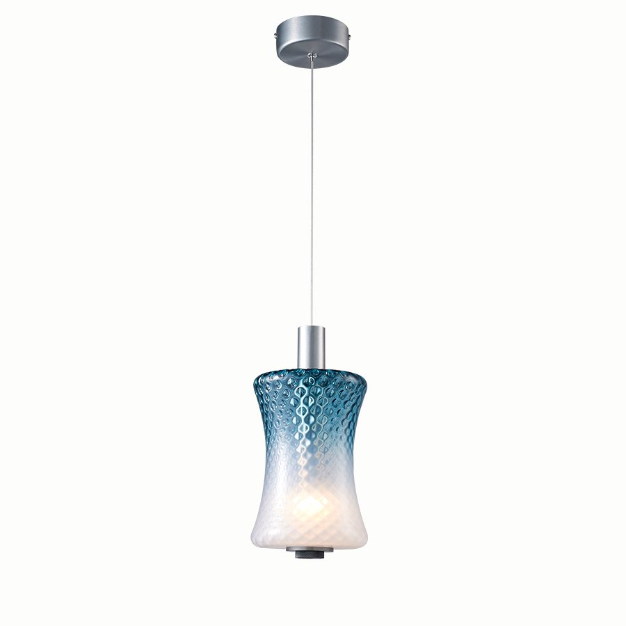 Κρεμαστό 1φωτο φωτιστικό με χειροποίητο γυαλί σε μπλε χρώμα και μεταλλικές λεπτομέρειες στο χρώμα του γραφίτη.