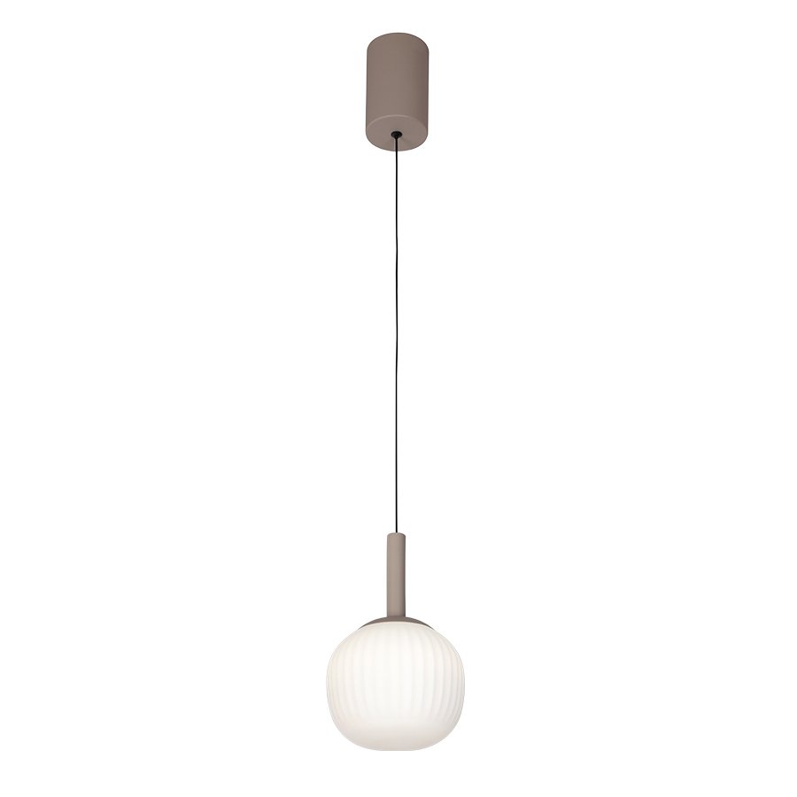 Κρεμαστό 1φωτο φωτιστικό οροφής σε χρώμα Sand Brown και opal γυαλιά.