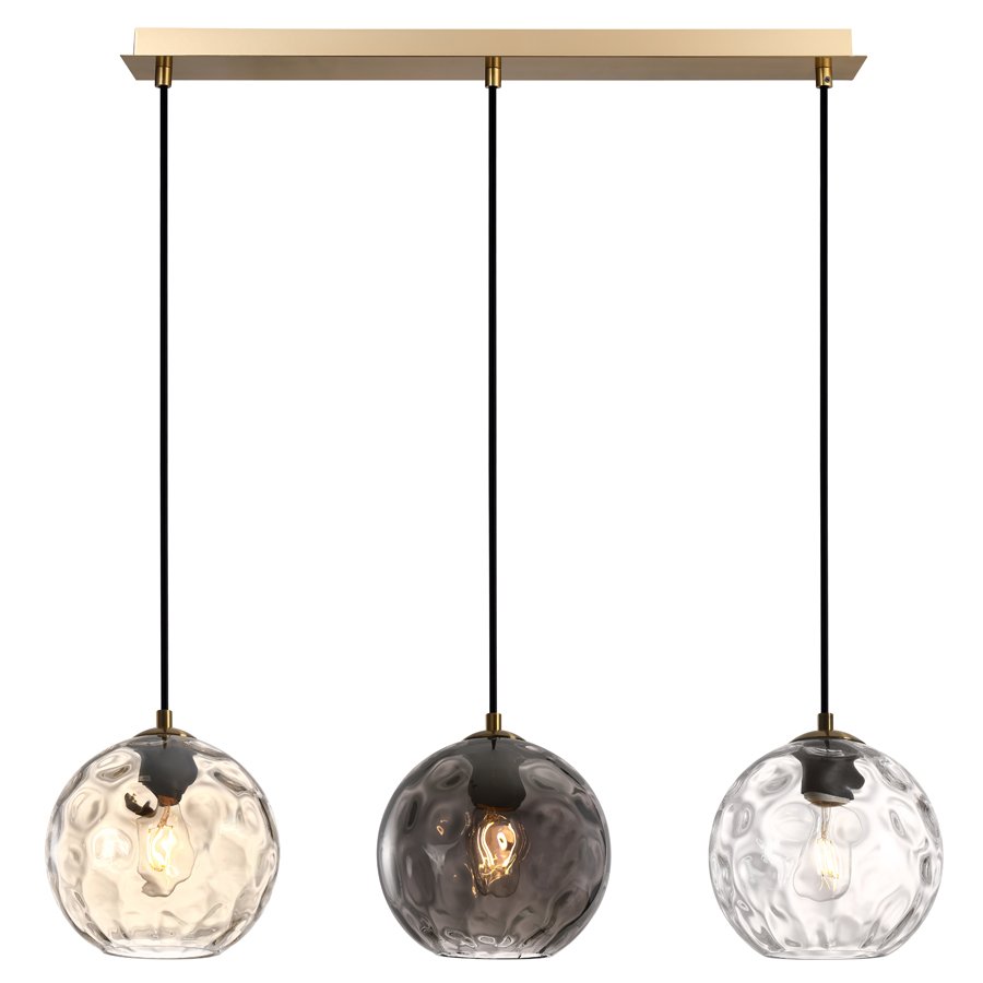 Πολύφωτο-κρεμαστό φωτιστικό κατασκευασμένο από χειροποίητα γυαλιά και μεταλλική βάση σε οξυντέ.Ύψος: 120 εκ.Μήκος: 65 εκ.Διάμετρος γυαλιού: 20 εκ.Λαμπτήρες: 3 τεμ.Τύπος Λαμπτήρα: Ε27Watt: 60