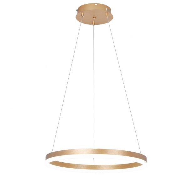 Κρεμαστό μονόφωτο κατασκευασμένο από αλουμίνιο και μέταλλο σε χρυσό ματ χρώμα και ακρυλικό . Με δυνατότητα εναλλαγής θερμοκρασίας φωτισμού(3000k-6000k) , dimmer , τηλεκοντρόλ και night mode.Ύψος: 100 εκ.Διάμετρος: 51 εκ.Τύπος Λαμπτήρα: LED SMDWatt: 32w 3000k , 32w 6000k , 50w 4000k