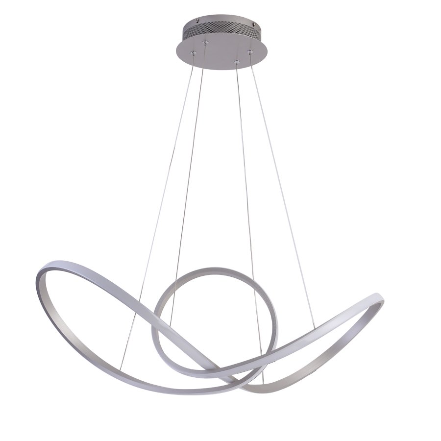 Πολύφωτο κρεμαστό φωτιστικό LED κατασκευασμένο από αλουμίνιο και μέταλλο σε ασημί ματ χρώμα και κάλυμμα σιλικόνης .Ύψος: 150εκ.Διάμετρος:80*20cm. Τύπος Λαμπτήρα: LED SMDWatt: 56w 4000k