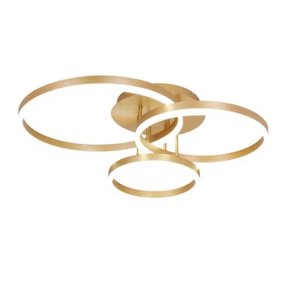 Οροφής πολύφωτο κατασκευασμένο από αλουμίνιο και μέταλλο σε χρυσό ματ χρώμα και ακρυλικό . Με δυνατότητα εναλλαγής θερμοκρασίας φωτισμού(3000k-6000k) , dimmer , τηλεκοντρόλ και night mode.Ύψος: 22 εκ.Πλάτος: 77 εκ.Μήκος: 60 εκ.Τύπος Λαμπτήρα: LED SMDWatt: 76w 3000k , 76w 6000k , 150w 4000k
