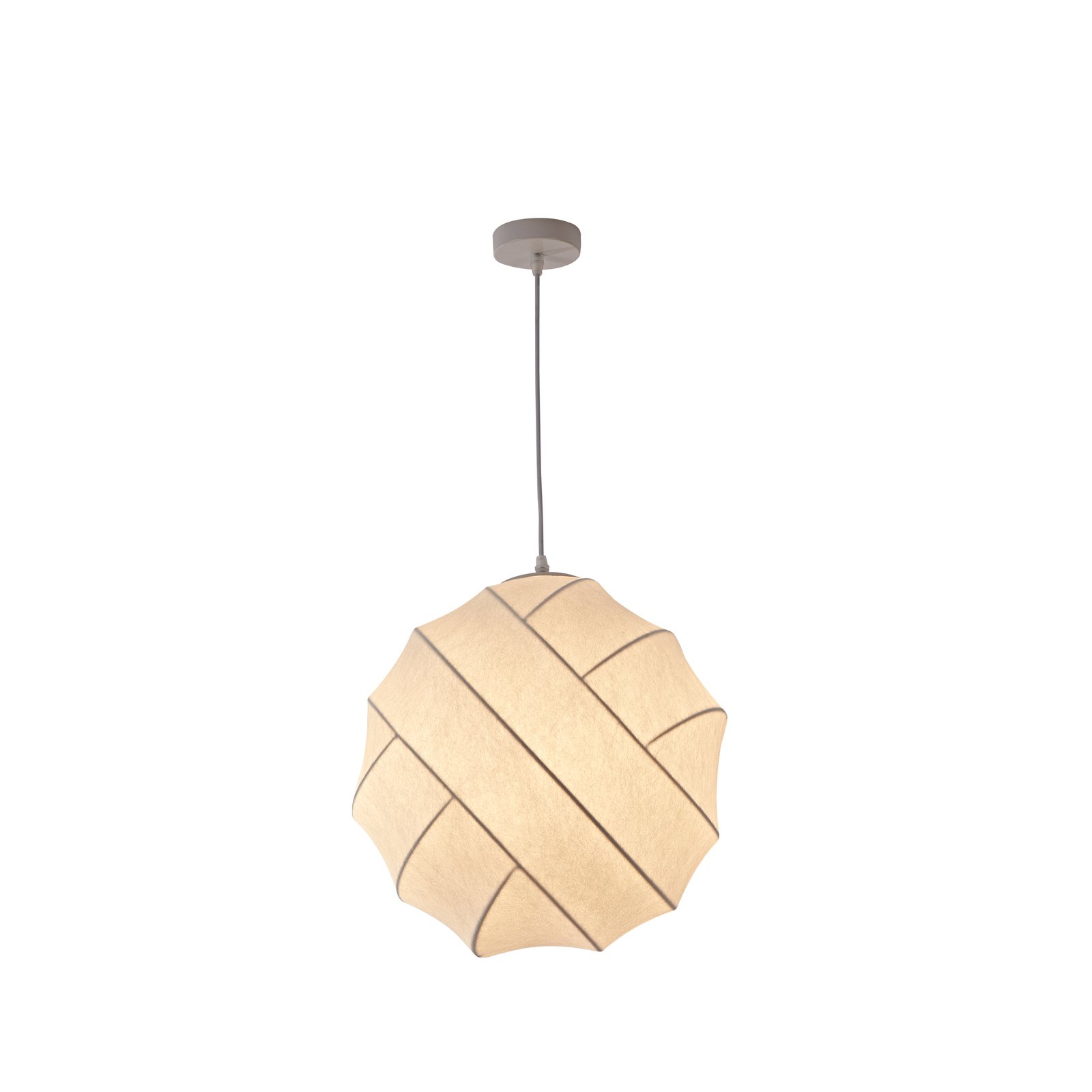 Κρεμαστό μονόφωτο φωτιστικό κατασκευασμένο από τεχνητό μετάξυ σε λευκό χρώμα.