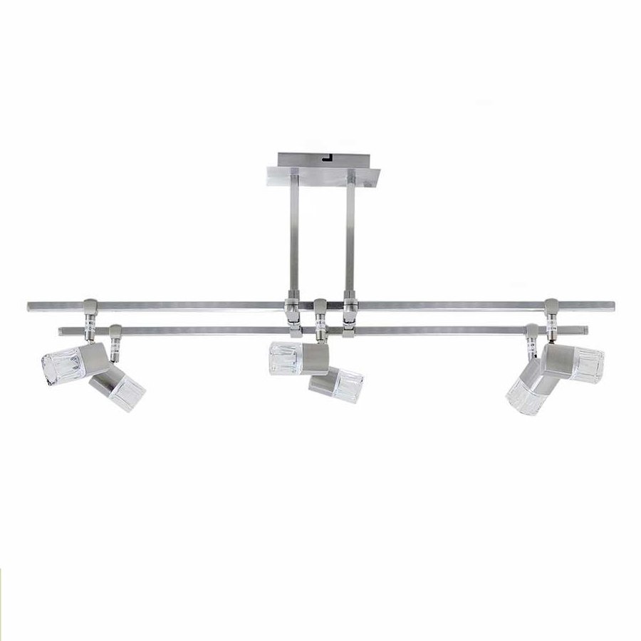 Φωτιστικό οροφής εξάφωτομε βάση σε νίκελ ματ με σποτ.Ύψος: 35 εκ.ΜΗΚΟΣ: 75 εκ.ΠΛΑΤΟΣ:18εκ.Λαμπτήρες: 6 τεμ.Τύπος Λαμπτήρων: G9 LEDWatt: 40